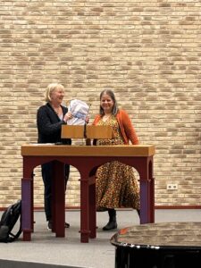 3 april 2025 Mooie bloemen voor koorlid Hanneke, uit handen van Akke en Dirk, namens het bestuur en de koorleden. Hanneke, van harte gefeliciteerd met je 25 jarig koor-jubileum! Dank je wel voor jouw vocale bijdrage al die jaren en blijf maar lekker bij ons zingen en met ons besturen. Je weet; er ligt een heel mooi muzikaal en avontuurlijk 2025 voor ons.