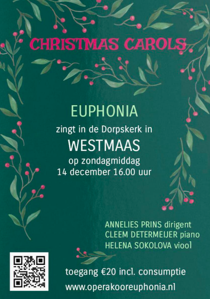 Op 14 december geeft Euphonia een kerstconcert om 16.00 uur in de Dorpskerk te Westmaas.